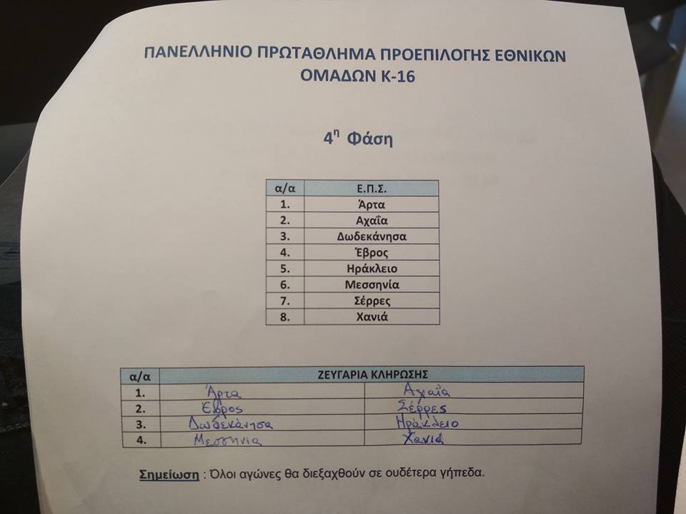 Έγινε στην ΕΠΟ η κλήρωση των Μικτών Ομάδων για τη φάση των “8” του Πανελλήνιου Πρωταθλήματος Προεπιλογής Εθνικών Ομάδων.
