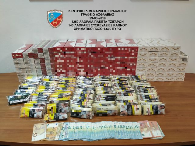Συγκεκριμένα οι ανωτέρω, εντοπίστηκαν στο Ηράκλειο να κινούνται πεζοί, μεταφέροντας τρεις (03) χαρτόκουτες, οι οποίες σε έλεγχο που διενεργήθηκε διαπιστώθηκε ότι περιείχαν χίλια διακόσια πενήντα (1.250) λαθραία πακέτα τσιγάρων, διαφόρων επωνυμιών και εκατόν τριάντα τέσσερις (134) λαθραίες συσκευασίες καπνού των 50γρ. έκαστη.