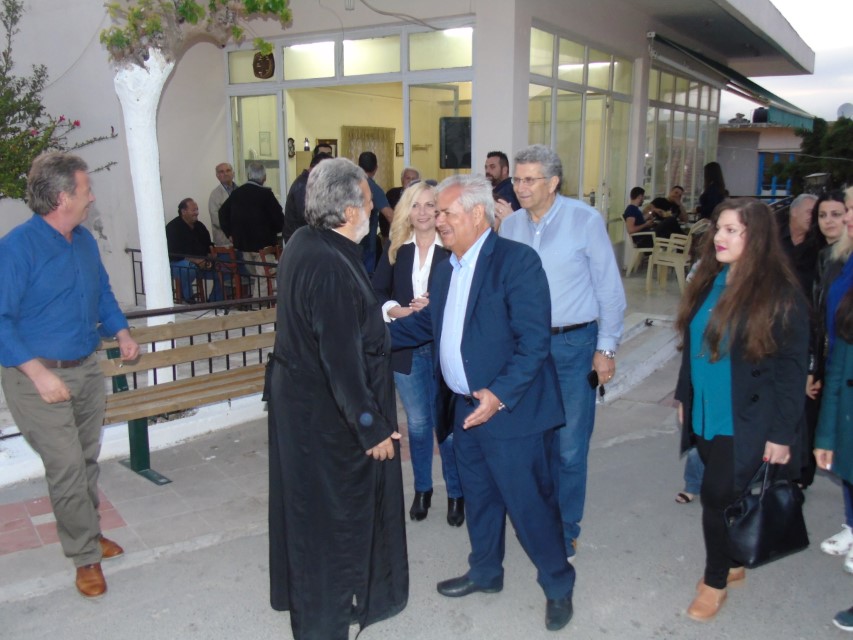 Στη πλατεία του χωριού των Κορφών τον υποδέχτηκε ο πρόεδρος της Κοινότητας Κώστας Φαραζάκης, ενώ το «παρών» έδωσαν οι αντιδήμαρχοι Γιώργος Βαλτζάκης και Μανόλης Παπαδομανωλάκης, ο Δημοτικός Σύμβουλος Γιάννης Ντουλάκης και οι πρόεδροι Κοινοτήτων Τυλίσου και Κρουσώνα Γιώργος Κουβίδης και Φώτης Τρυπιδάκης .