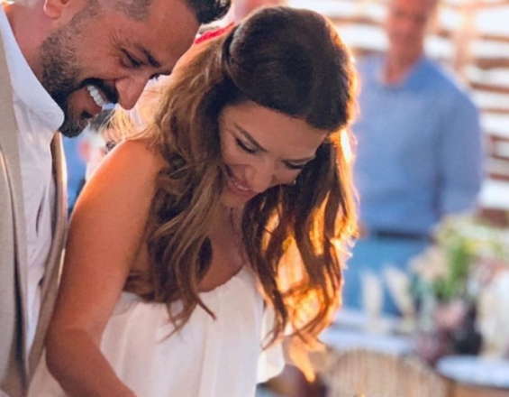 Η γνωστή ηθοποιός εμφανίστηκε με ένα λευκό νυφικό φόρεμα λάμποντας από ευτυχία. Το γνωστό ζευγάρι έκοψε τούρτα και μαζί με τους δικούς τους ανθρώπους γλέντησαν μέχρι τις πρώτες πρωινές ώρες.