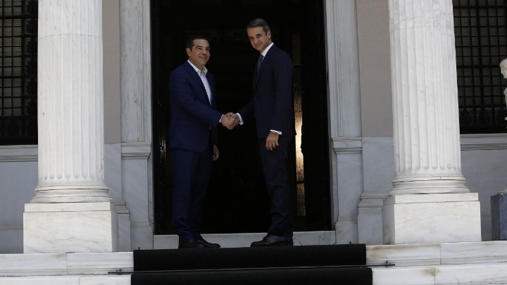Αμέσως μετά την ορκωμοσία του ο κ. Μητσοτάκης κατευθύνθηκε στο Μέγαρο Μαξίμου, όπου τον περίμενε στην κορυφή της σκάλας ο απελθών πρωθυπουργός, Αλέξης Τσίπρας. Ο κ. Μητσοτάκης ανέβηκε με ταχύ βήμα, αντάλλαξε σύντομη χειραψία για τους φωτογράφους με τον Αλέξη Τσίπρα και στην συνέχεια ο κ. Τσίπρας τον συνόδευσε στο εσωτερικό του Μεγάρου Μαξίμου. Είναι μία διαδικασία που όπως επισήμανε χθες ο κ. Τσίπρας δεν είχε ακολουθηθεί το 2015 όταν έγινε εκείνος πρωθυπουργός αλλά δεν του παρέδωσε το Μαξίμου ο τότε προκάτοχός του.
