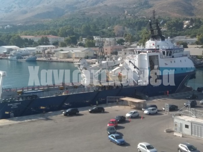 Στη Σούδα έδεσε το σκάφος Ievoli cobalt με σημαία Ιταλίας που μεταφέρει το καλώδιο για την ενεργειακή διασύνδεση Κρήτης – Πελοποννήσου.
