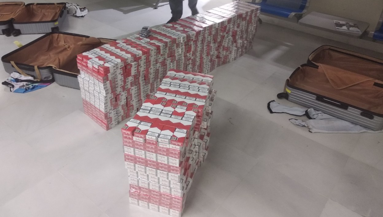 Kατά τη διάρκεια του ελέγχου βρέθηκαν στην κατοχή του συνολικά και κατασχέθηκαν 2.840 πακέτα τσιγάρα, τα οποία δεν έφεραν την απαιτούμενη ειδική ταινία φόρου κατανάλωσης και ως εκ τούτου στερούνται τελωνειακού ελέγχου και σήμανσης καθώς και το χρηματικό ποσό των 500 ευρω.