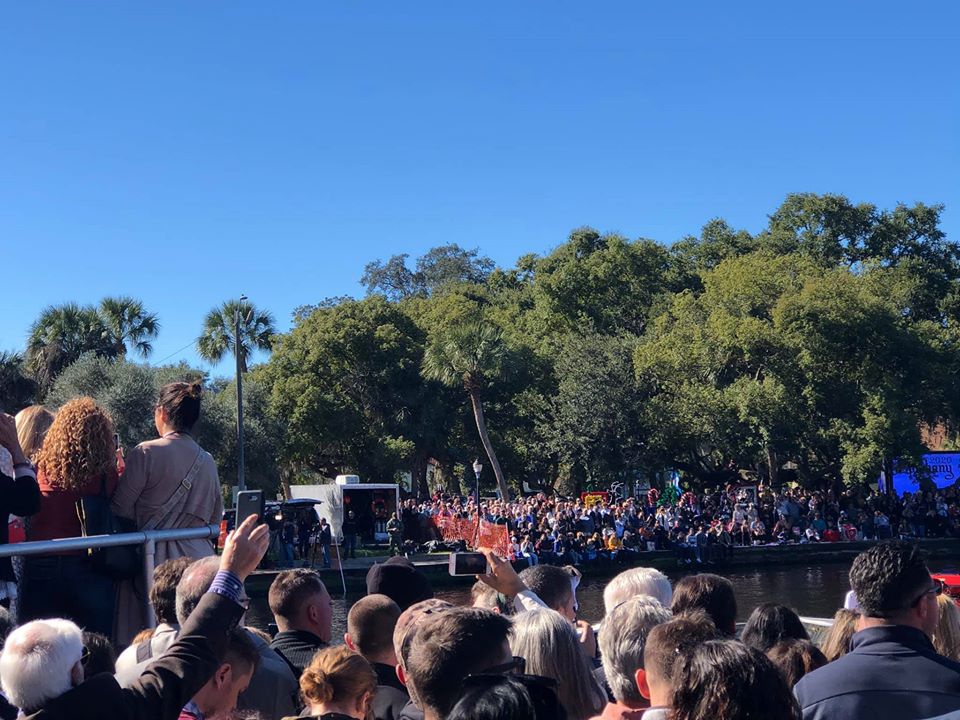 Ο πρωθυπουργός από την αποβάθρα που στεκόταν ακριβώς δίπλα στον Αρχιεπίσκοπο, φαινόταν βαθιά συγκινημένος από την όλη τελετή, αλλά και από την ιστορική της σημασία, καθώς είναι ο πρώτος Έλληνας πρωθυπουργός που επισκέφθηκε τη Φλόριντα, ο τόπος στον οποίο κατοίκησαν οι πρώτοι Έλληνες στον νέο κόσμο, σχεδόν 300 χρόνια πριν».