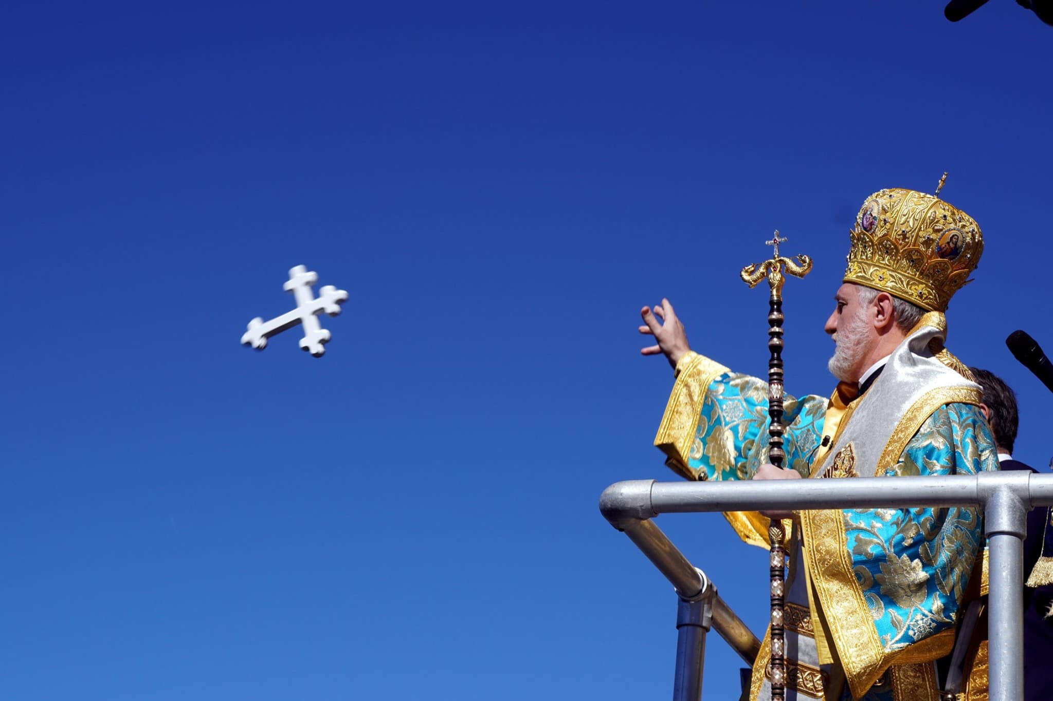 Μετά την ιερή Θεία Λειτουργία και τον Αγιασμό των υδάτων, περπάτησαν όλοι μαζί στον ιστορικό βάλτο στο κέντρο της ιστορικής πόλης, όπου ο Αρχιεπίσκοπος, μετά τον Αγιασμό, πέταξε τον Σταυρό στη θάλασσα.