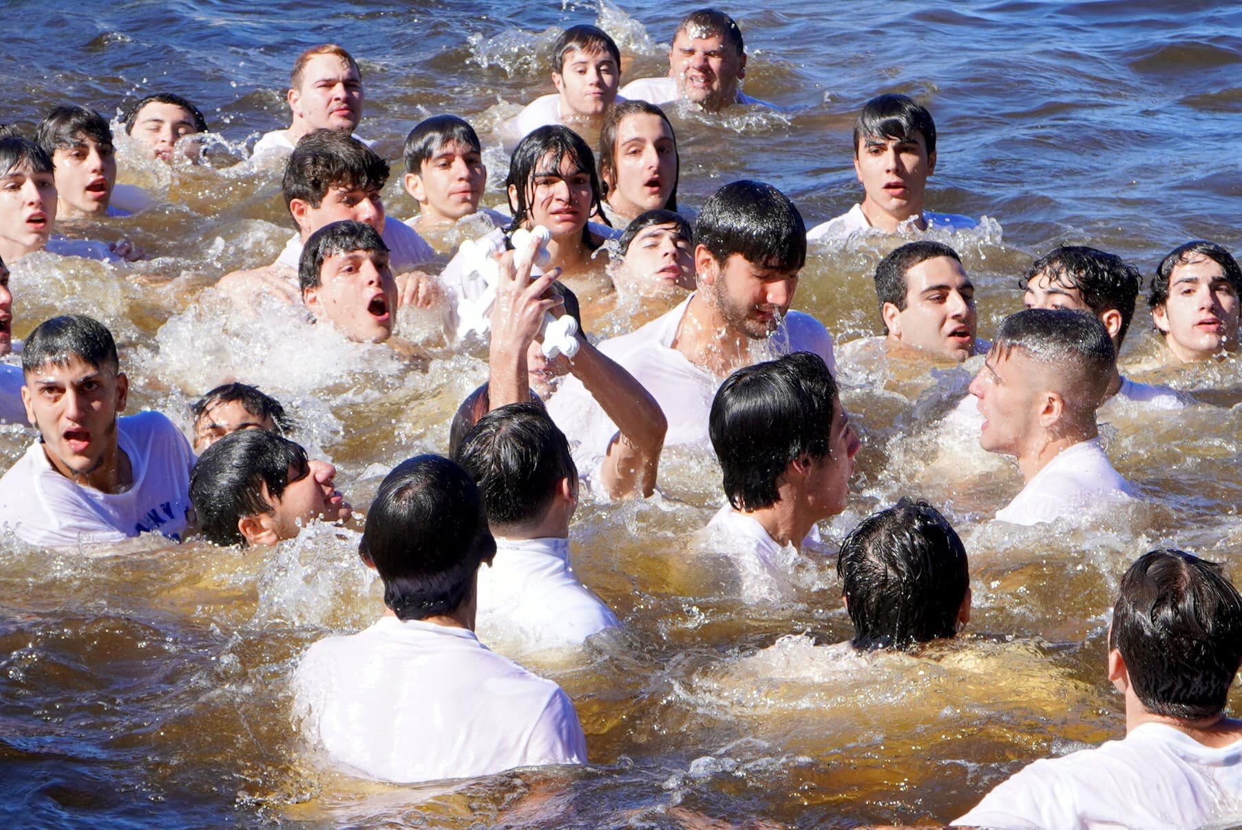 «Όταν ο Αρχιεπίσκοπος έψαλλε το «Εν Ιορδάνη βαπτιζομένου σου Κύριε…» έπεσαν όλοι στα κρύα νερά του Μπαγιού, ψάχνοντας για τον Τίμιο Σταυρό. Μέσα σε λίγα δευτερόλεπτα, ένας από τους κολυμβητές βγήκε στην επιφάνεια του νερού, κρατώντας τον λευκό ξύλινο σταυρό στο δεξί του χέρι.  Όλοι οι άλλοι κολυμβητές έσπευσαν να τον συγχαρούν.