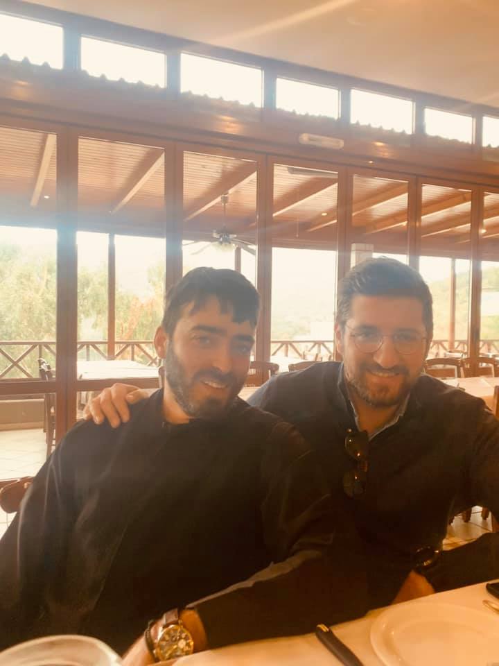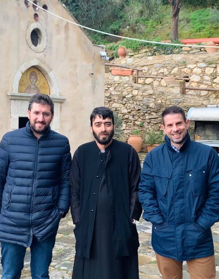 Οι δύο άνδρες στηρίζουν έμπρακτα το αναστηλωτικό έργο που βρίσκεται σε εξέλιξη στη Μονή και γι αυτό ο ηγούμενος της, π. Παντελεήμονας, τους ευχαριστεί και σε σχετική ανάρτηση του τους αφιερώνει και μια μαντινάδα ” Φιλία είναι σεβασμός, αγάπη, εμπιστοσύνη ,για μας τους τρεις θα εύχομαι για πάντα να απομείνει”