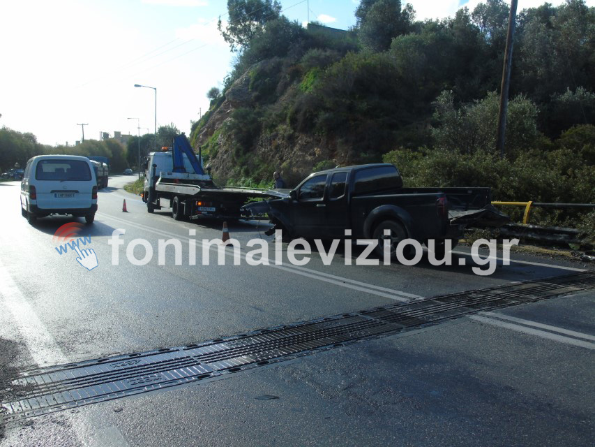 Η σύγκρουση ήταν τόσο σφοδρή που το ένα όχημα έγινε σχεδόν μια άμορφη μάζα από την πλευρά του οδηγού , ενώ από το αγροτικό έφυγε μέχρι και ο ένας τροχός.