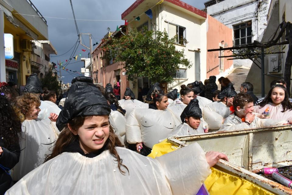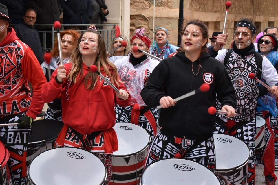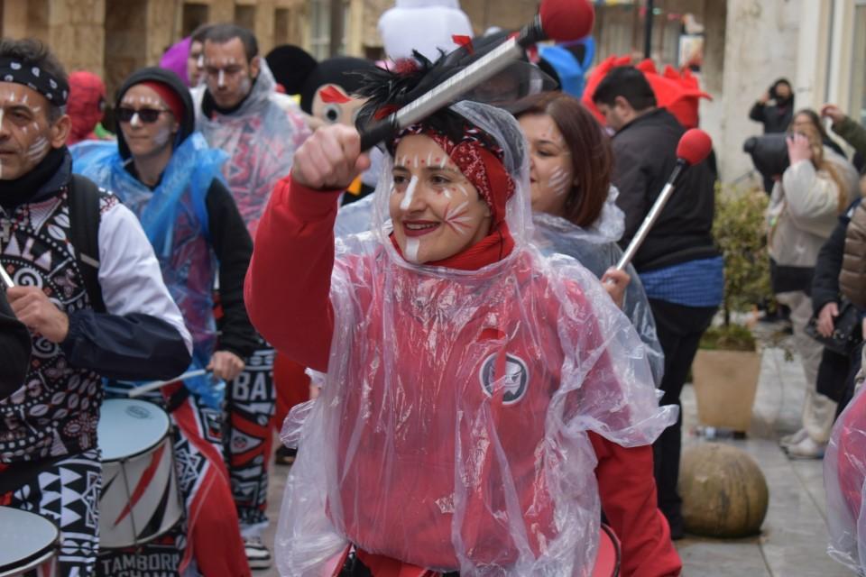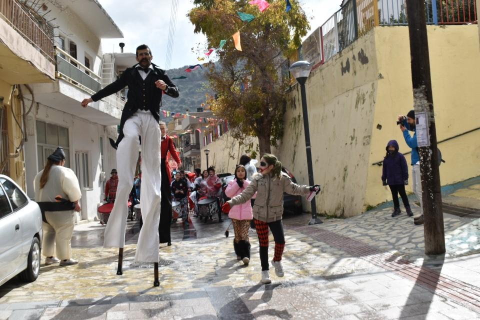 Οι ήχοι από τα τύμπανα των Batala Creta, οι βραζιλιάνικοι ρυθμοί και το κέφι ζέσταναν την ατμόσφαιρα και ανέβασαν την αδρεναλίνη συμπαρασύροντας μαζί τους όλους τους κατοίκους που παρακολουθούσαν την Μεγάλη Παρέλαση είτε από μπαλκόνια και αυλές, για να συνεχίσουν όλοι μαζί στην πλατεία της Αγίας Τριάδας.
