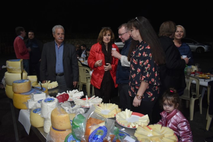 Μετά το λουκούλλειο γεύμα ήρθαν και οι συζητήσεις και όποιος δεν μπορούσε να επικοινωνήσει με τη γλώσσα, το κατάφερνε με το βλέμμα, το χαμόγελο, τις αγκαλιές και τις ευχές. «Καλές ντουλιές» έλεγαν και τσούγκριζαν τα ποτήρια με τα μάτια να μιλούν περισσότερο. Οι καλεσμένοι δεν έφυγαν με άδεια χέρια αφού η οικογένεια Ξυλούρη δώρισε σε κάθε επισκέπτη, έλληνα και ξένο, διάφορα τυριά μαζί με την ελπίδα για μελλοντική συνεργασία.