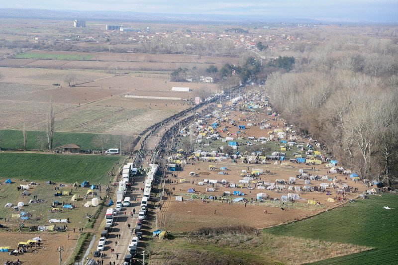 Στο twitter αναρτήθηκαν εικόνες με τον Τούρκο ΥΠΕΣ να βρίσκεται πάνω από τα σύνορα στον Εβρο με ελικόπτερο. Μάλιστα από τις πανοραμικές λήψεις φαίνεται πως έχει στηθεί καταυλισμός στα σύνορα για τους μετανάστες με σκηνές, πρόχειρα καταλύματα στο έδαφος και χημικές τουαλέτες.