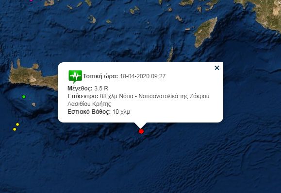 Σεισμική δόνηση 3,5 βαθμών της κλίμακας Ρίχτερ σημειώθηκε πριν από λίγο νότια της Κρήτης και συγκεκριμένα κοντά στον Μακρύ Γιαλό στο Λασίθι.