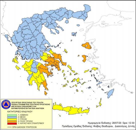 Ο κίνδυνος πυρκαγιάς είναι πολύ υψηλός για αύριο, Τετάρτη 29 Ιουλίου, σε τέσσερις περιφέρειες, σύμφωνα με τον χάρτη πρόβλεψης που εκδίδει η Γενική Γραμματεία Πολιτικής Προστασίας.