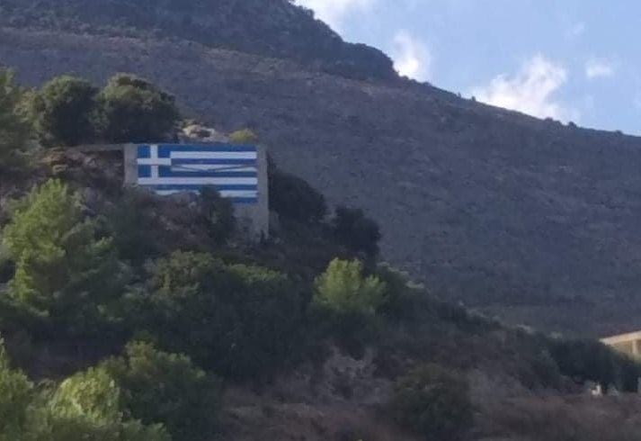 Μάλιστα, η ελληνική σημαία είναι τόσο μεγάλη που είναι ορατή και εκτός του οικισμού.