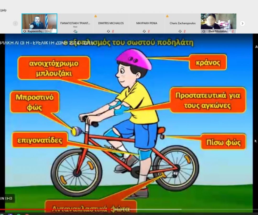 Επιπλέον οι μαθητές ενημερώθηκαν για τους κινδύνους που διατρέχουν οι ποδηλατιστές κατά την κίνησή τους, ενώ δόθηκε ιδιαίτερη έμφαση στον απαραίτητο εξοπλισμό. Στο πλαίσιο του μαθήματος, οι μικροί φίλοι γνώρισαν τους βασικούς κανόνες, που αφορούν τους ποδηλατιστές και πρέπει αυτοί να τηρούν, ώστε να κινούνται με ασφάλεια.