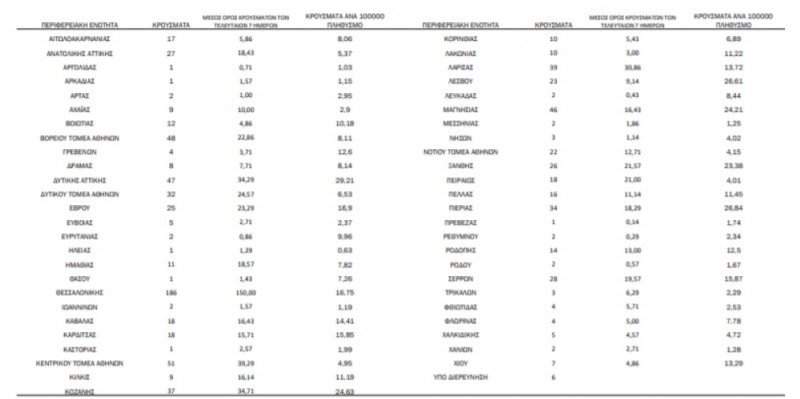 Αναλυτικά η γεωγραφική κατανομή των κρουσμάτων έχει ως εξής: