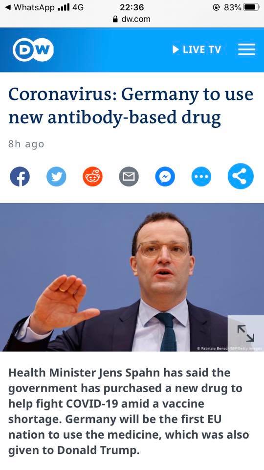 Ο Παύλος Πολάκης τονίζει συγκεκριμένα: «Ο Γερμανός υπουργός Υγείας Jens Span λέει τα ίδια λόγια με αυτά που έλεγα στο βήμα της Βουλής από τις 13 Δεκεμβρίου -και νωρίτερα. Τα φάρμακα αυτά λειτουργούν σαν παθητικός εμβολιασμός. Η χορήγηση αντισωμάτων στα αρχικά στάδια μπορεί να βοηθήσει τους ασθενείς υψηλού κινδύνου να αποφύγουν μια πιο σοβαρή εξέλιξη».