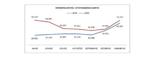 Ειδικότερα το Μάιο η διαφορά εκτοξεύεται στο 157% ενώ σταδιακά μειώνεται στο 43% τον Αύγουστο και Σεπτέμβριο για να υποχωρήσει περαιτέρω η διαφορά τον Οκτώβριο και Νοέμβριο του 2020.