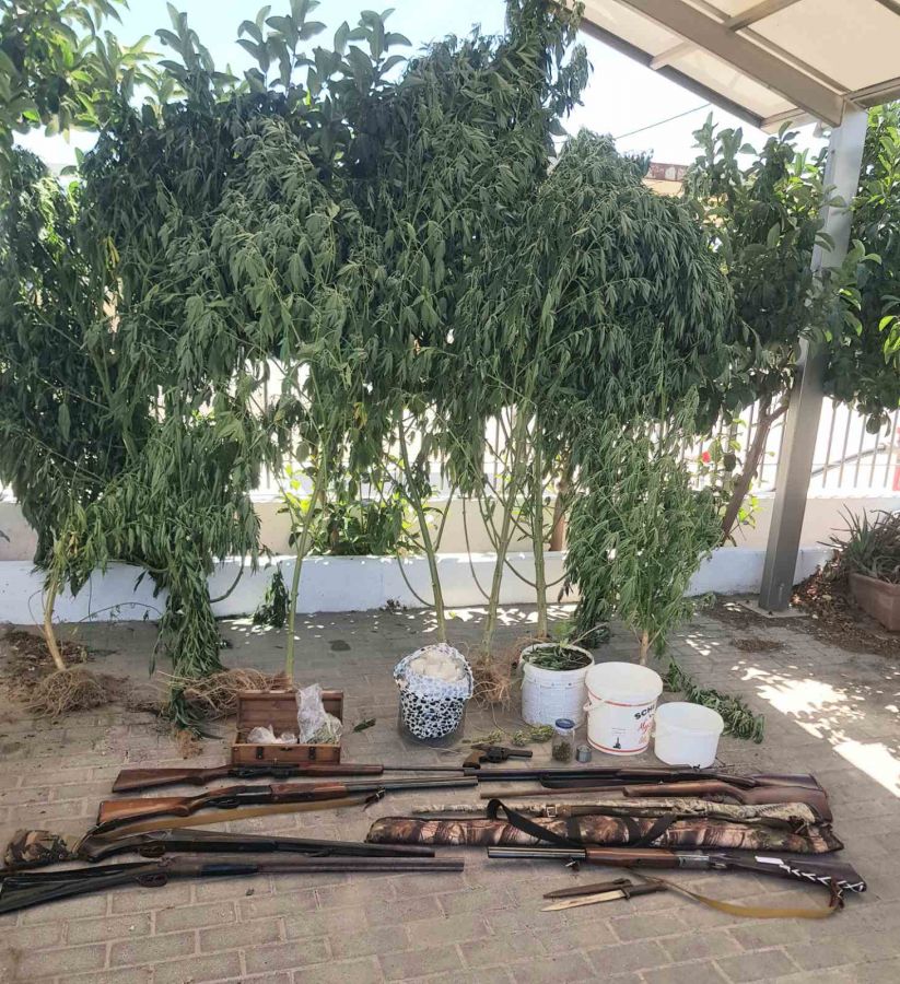 Κατασχέθηκαν 8 δενδρύλλια κάνναβης, κυνηγετικά όπλα, 37 γραμμάρια κάνναβης και σπόροι κάνναβης .
