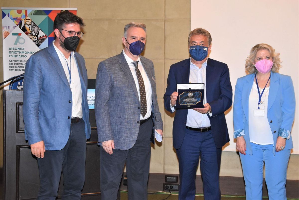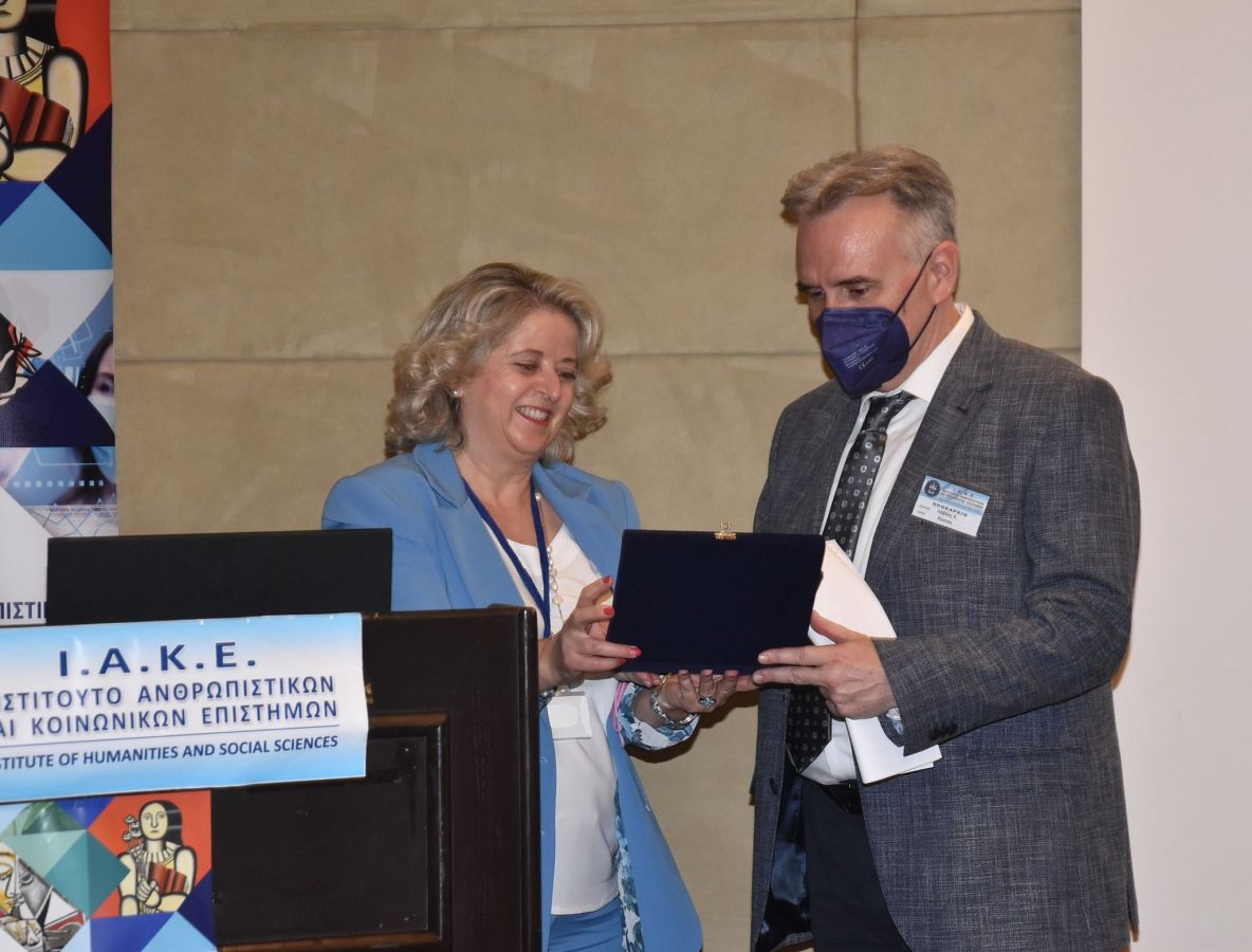 Το Ι.Α.Κ.Ε. απένειμε τιμητική πλακέτα στον καταξιωμένο σε διεθνές επιστημονικό επίπεδο Καθηγητή για τη γενικότερη συνεισφορά του στην Επιστήμη και τα Εθνικά μας ζητήματα, την πολύτιμη συμβολή του στην προβολή των ελληνικών σπουδών στις ΗΠΑ και τη συμμετοχή του στο 7ο Συνέδριο.