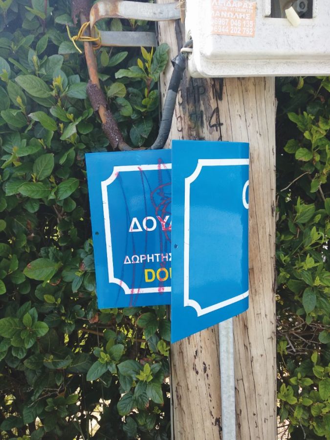 Η μια πινακίδα είχε απομακρυνθεί και την άλλη κάποιος την είχε διπλώσει στα δύο.