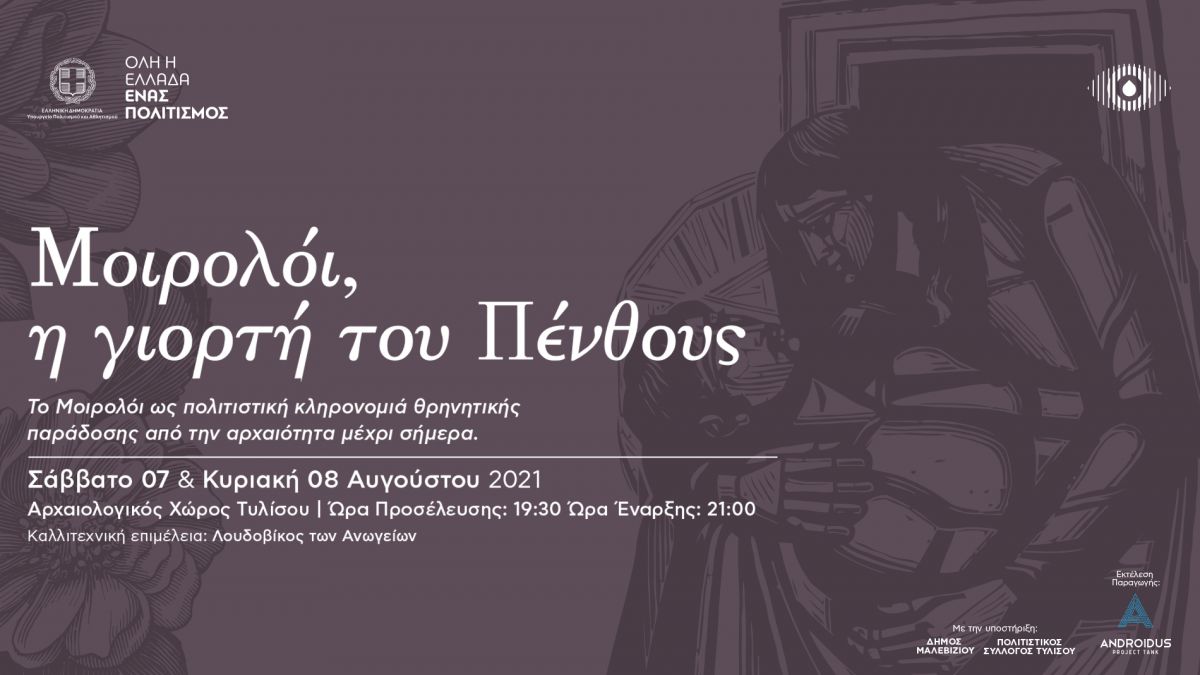 Με τη στήριξη του Δήμου Μαλεβιζίου θα πραγματοποιηθεί η εκδήλωση «Μοιρολόι, η Γιορτή του Πένθους. Το μοιρολόι ως πολιτιστική κληρονομιά θρηνητικής παράδοσης από την αρχαιότητα μέχρι σήμερα».