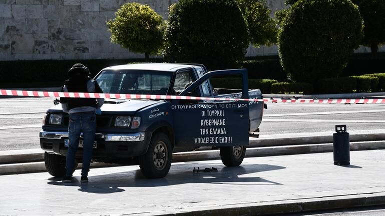 Συναγερμός σήμανε λίγο μετά τις 10 π.μ. έξω από τη Βουλή, όταν αγροτικό όχημα ανέβηκε μπροστά στο μνημείο του Αγνώστου Στρατιώτη.
