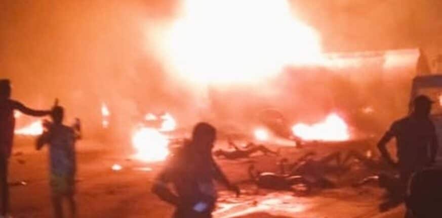 Καύσιμα συνέχιζαν να διαρρέουν από την κατεστραμμένη δεξαμενή σήμερα το πρωί, την ώρα που αστυνομικοί και στρατιώτες επιχειρούσαν να απομακρύνουν από τον δρόμο τα πλήθη περαστικών που είχαν συγκεντρωθεί, μεταδίδει δημοσιογράφος του Reuters.