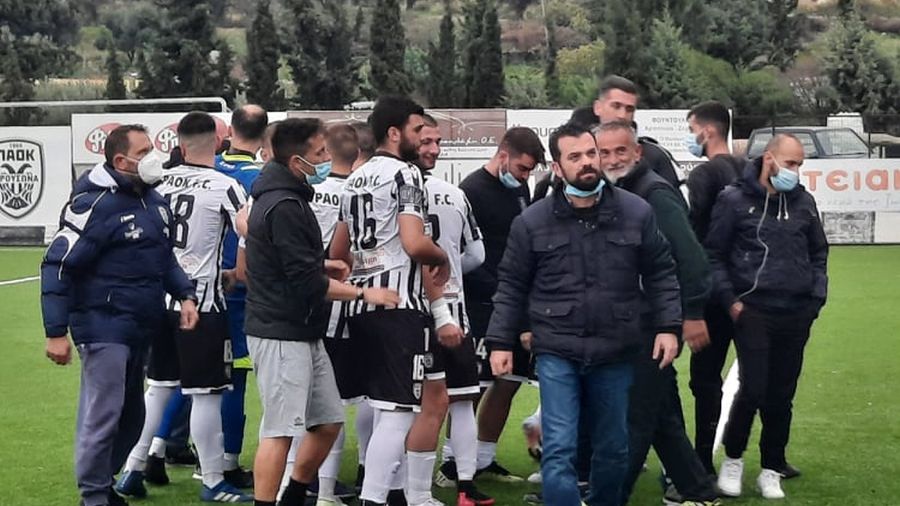 Στο 48′ μπαλιά του Σκούφου βγήκε μόνος ο Σαράντος Σακλαμάκης και έκανε εύκολα με σουτ το 4-0.