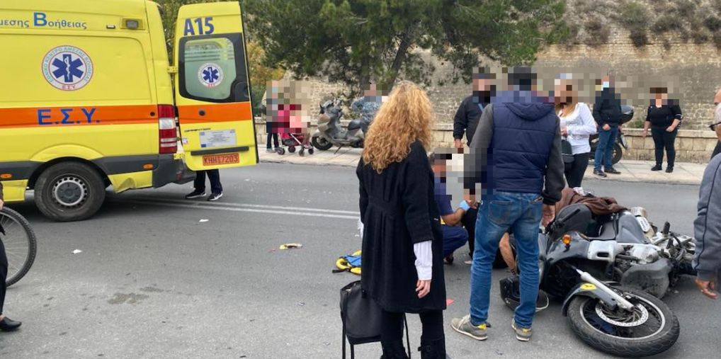 Τροχαίο ατύχημα σημειώθηκε λίγο πριν τις 12 το μεσημέρι στο κέντρο του Ηρακλείου, όταν ένα αυτοκίνητο συγκρούστηκε με μηχανή.