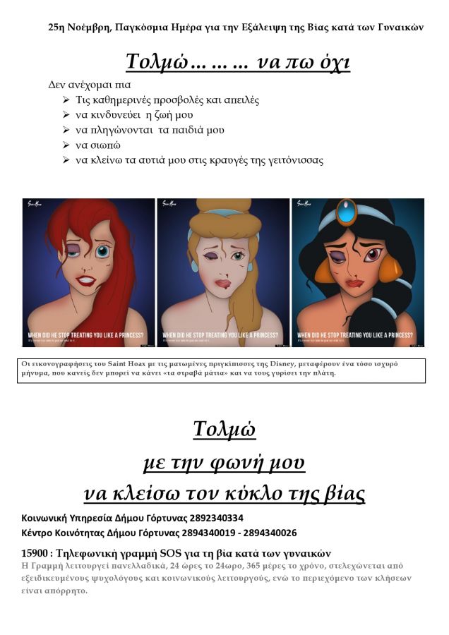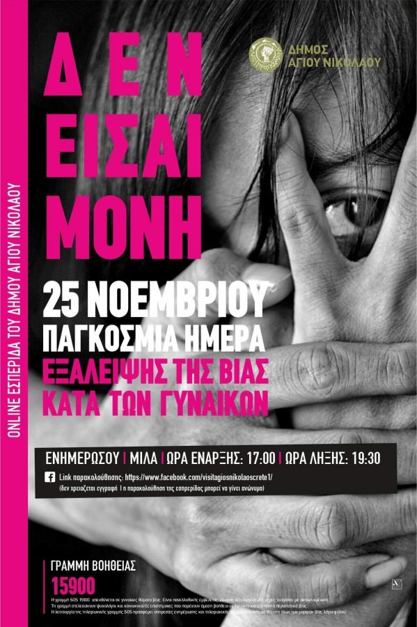 -25 Νοεμβρίου 2021, ημέρα Πέμπτη και ώρα 6:00-8:00μ.μ.: Δράσεις για τον Εορτασμό της «Παγκόσμιας Ημέρας Εξάλειψης της Βίας κατά των Γυναικών».