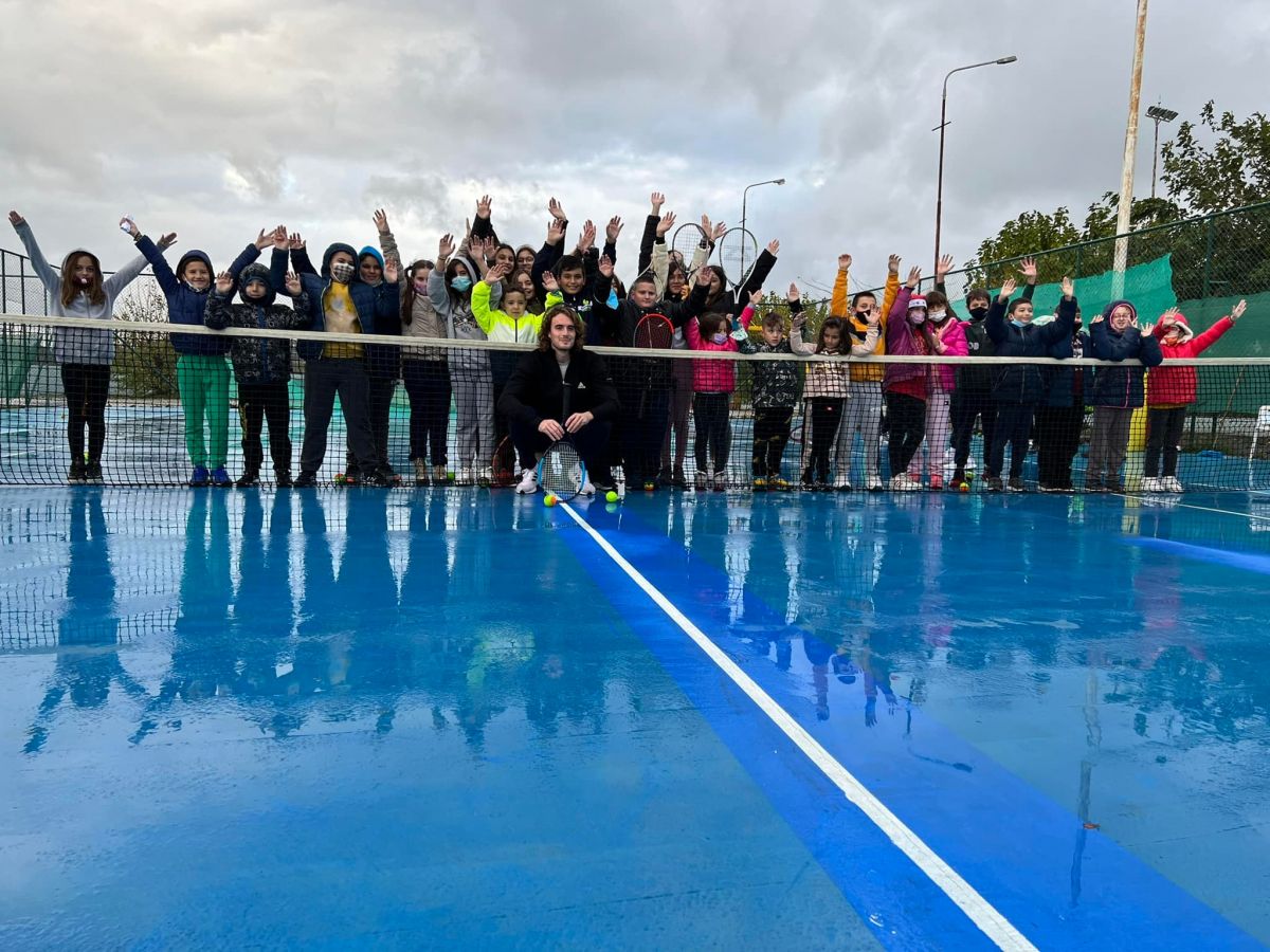 Ο Τσιτσιπάς παίζει με τα παιδιά στο Αρκαλοχώρι