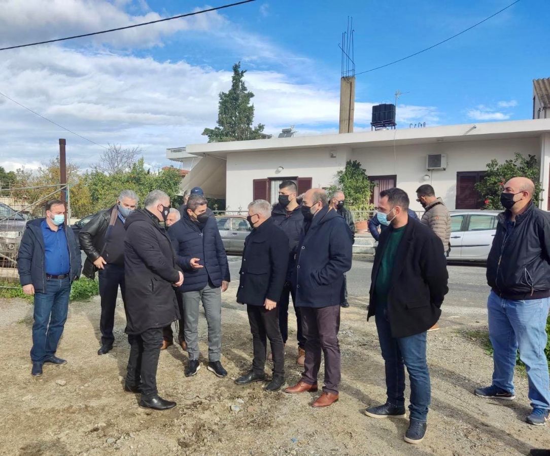 “Με τον Δήμαρχο, Γρηγόρη Νικολιδάκη, τον Αντιδήμαρχο Τεχνικών Υπηρεσιών και Πολεοδομίας, Γιάννη Φασομυτάκη και άλλα στελέχη του Δήμου Φαιστού στις εργασίες που μόλις ξεκίνησαν για την ανέγερση του υπερσύγχρονου Κλειστού Γυμναστηρίου.