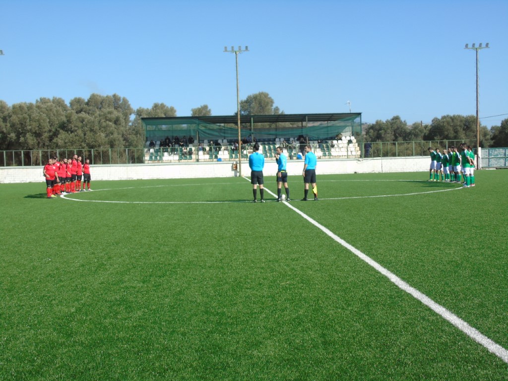 Στο 22′ κόντρα στη ροή του αγώνα ο Λεμονάκης γύρισε προς την αντίπαλη εστία και με απίστευτο σουτ με το αριστερό από πολύ μακριά έστειλε τη μπάλα στο παραθυράκι του Δρακωνάκη για το 1-0.