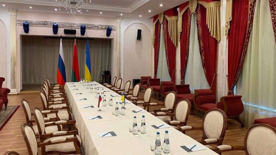 Οι συνομιλίες ανάμεσα στις αντιπροσωπείες της Ουκρανίας και της Ρωσίας διεξάγονται στα σύνορα ανάμεσα στην Ουκρανία και τη Λευκορωσία, παρά το γεγονός ότι η τελευταία χρησιμεύει ως βάση οπισθοφυλακής για τις δυνάμεις της Μόσχας στην επίθεσή τους στο Κίεβο. Οι συνομιλίες αυτές θα διεξαχθούν «χωρίς προαπαιτούμενα», σύμφωνα με την Ουκρανία, η οποία δηλώνει ότι δεν σκοπεύει «να συνθηκολογήσει». Σύμφωνα με το Κίεβο, ο Λευκορώσος πρόεδρος Αλεξάντερ Λουκασένκο, σύμμαχος του Ρώσου προέδρου Βλαντίμιρ Πούτιν, δεσμεύτηκε ότι τα ρωσικά αεροσκάφη, ελικόπτερα και πύραυλοι που έχουν αναπτυχθεί στο έδαφός της χώρας του θα παραμείνουν εκεί κατά τη διάρκεια της άφιξης, των διαπραγματεύσεων και της αποχώρησης της ουκρανικής αντιπροσωπείας.