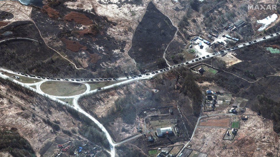 Μια τεράστια ρωσική αυτοκινητοπομπή με τεθωρακισμένα οχήματα, εκτιμώμενου μήκους 60 χιλιομέτρων, κατευθύνεται προς το Κίεβο, την πρωτεύουσα της Ουκρανίας. Σχετικά πλάνα αποτυπώθηκαν από τον δορυφόρο.