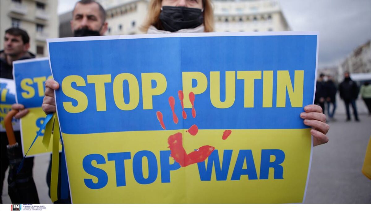 Συγκέντρωση διαμαρτυρίας για τον πόλεμο που μαίνεται στην Ουκρανία, πραγματοποίησαν στην πλατεία Αριστοτέλους, Ουκρανοί πολίτες που ζουν στη Θεσσαλονίκη.