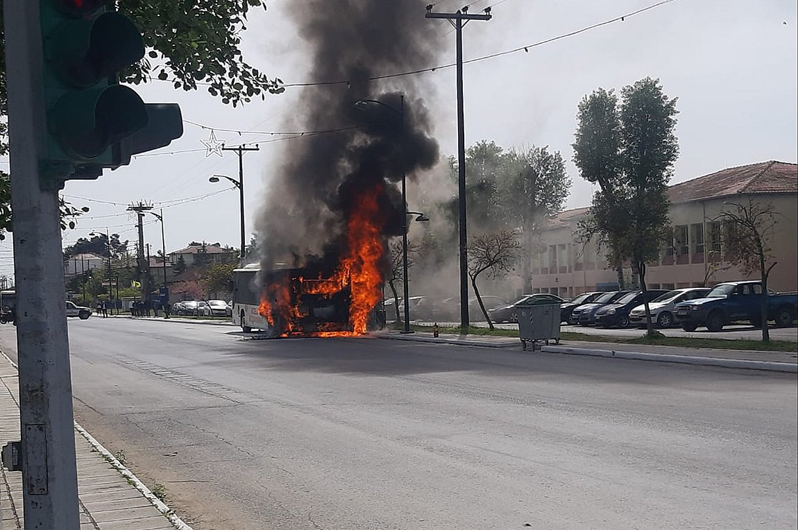 Στη συνέχεια, ακολούθησε δυνατή έκρηξη και το λεωφορείο τυλίχθηκε μέσα σε λίγο χρόο στις φλόγες .