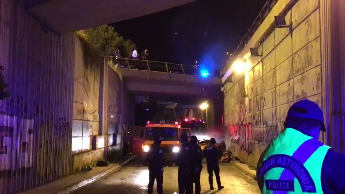 Ένα ΙΧ, υπό αδιευκρίνιστες συνθήκες, έπεσε από τη γέφυρα που βρίσκεται επί των οδών Κύμης και Καποδιστρίου και κατέληξε στο οδόστρωμα, έχοντας αναποδογυρίσει και καταλήξει σε μία άμορφη μάζα.