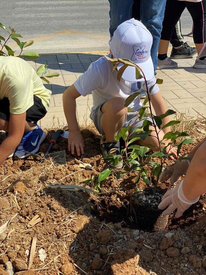 Επίσης, τα super markets Χαλκιαδάκης προμηθεύτηκαν και τοποθέτησαν αστικό εξοπλισμό στο χώρο. Επιπλέον, εφαρμόζοντας την κυκλική οικονομία στην πράξη, το λίπασμα τύπου compost που χρησιμοποιήθηκε προέρχεται από το πιλοτικό πρόγραμμα κομποστοποίησης, που πραγματοποιήθηκε σε συνεργασία με το Ελληνικό Μεσογειακό Πανεπιστήμιο (ΕΛΜΕΠΑ) και την αξιοποίηση των φυτικών αποβλήτων μαναβικής των καταστημάτων Χαλκιαδάκης.