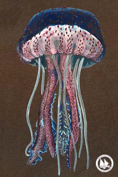 Η Μωβ Μέδουσα(Pelagia noctiluca) όταν είναι νεαρή το χρώμα της είναι Πορτοκαλό-Καφέ και όταν ενηλικιώνεται παίρνει αυτό το έντονο Πορφυρό-Μωβ χρώμα.