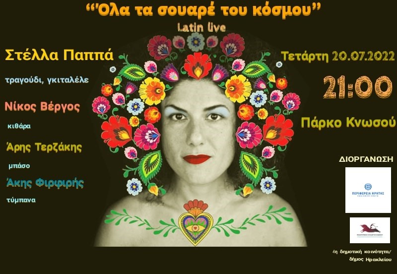 Η εκδήλωση, με την στήριξη της Περιφέρειας Κρήτης, θα γίνει αύριο Τετάρτη 20 Ιουλίου στις 9 το βράδυ στο πάρκο Κνωσού (δίπλα στις αρχαιότητες Κνωσού) με ελεύθερη είσοδο.