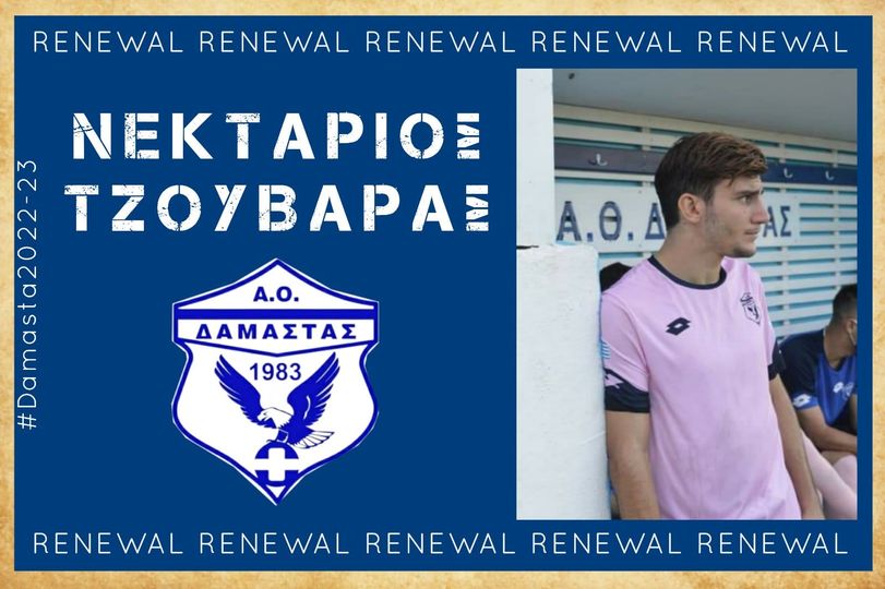 Ο Αθλητικός Όμιλος Δαμάστας ανακοινώνει την ανανέωση της συνεργασίας με τον Ποδοσφαιριστή Νεκτάριο Τζουβάρα για ακόμα μια σεζόν. Ο Νεκτάριος Τζουβάρας θα αγωνιστεί με τα χρώματα της Δαμάστας για πέμπτη συνεχόμενη χρονιά και είναι πλέον από τους παλαιότερους ποδοσφαιριστές της ομάδας μας.