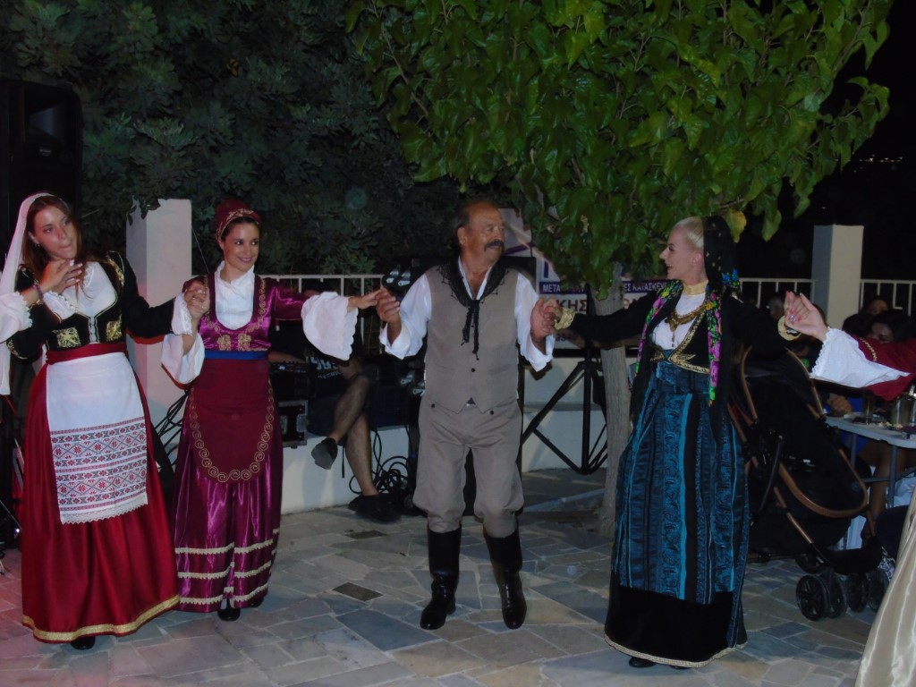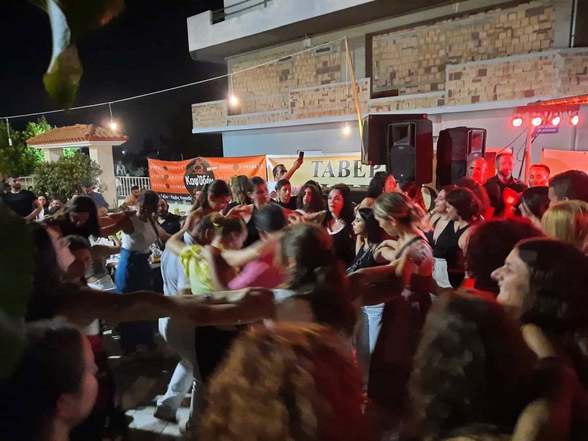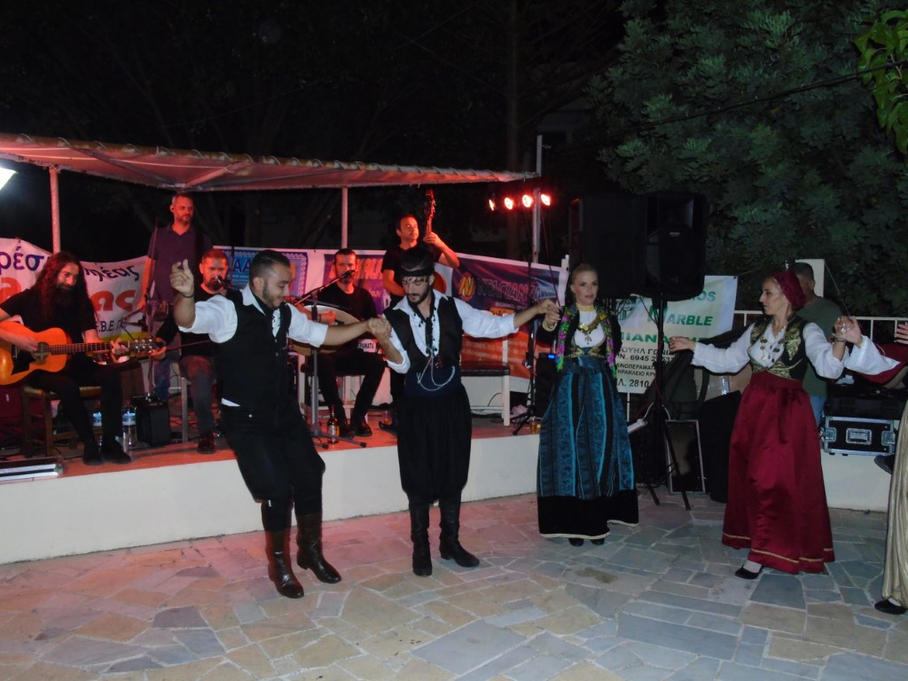 Το πρόγραμμα ξεκίνησε με χορούς από κρητικά συγκροτήματα της περιοχής, αλλά και του Ηρακλείου, που έδωσαν ένα ξεχωριστό χρώμα στη βραδιά και απέσπασαν το χειροκρότημα του κοινού. Μαζί τους χόρεψε και ο πρόεδρος του συλλόγου Γιώργος Μπελιμπασάκης.