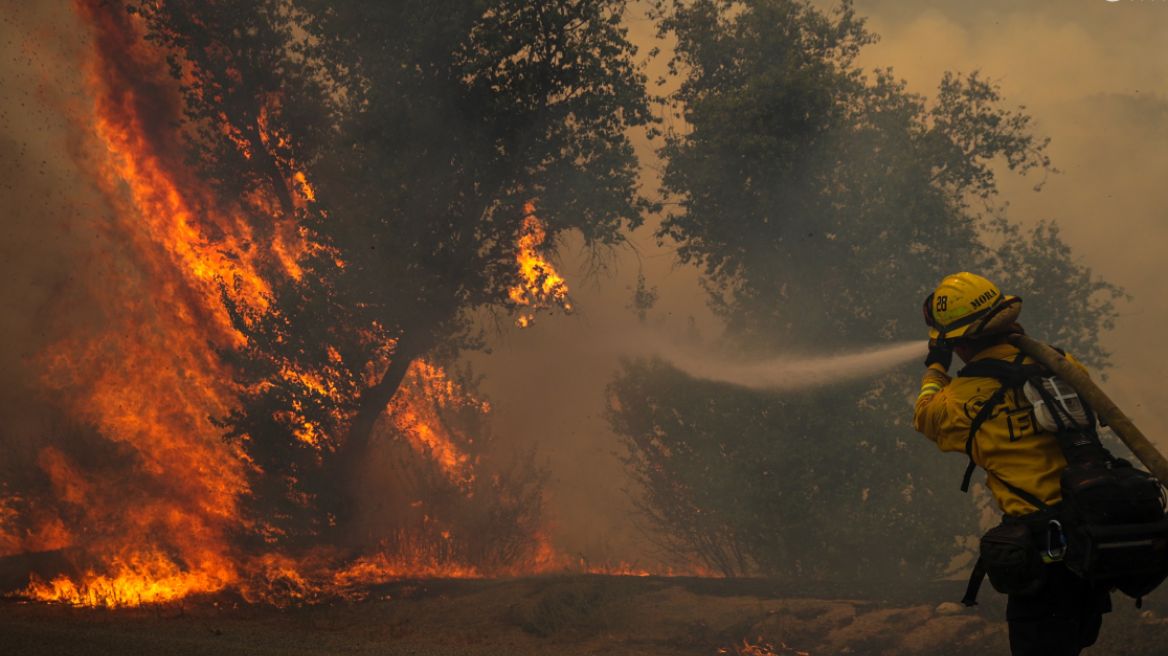 Σχεδόν 97.000 στρέμματα γης έχουν ήδη γίνει παρανάλωμα της πυρκαγιάς αυτής που εκδηλώθηκε τη Δευτέρα, εν μέσω κύματος ακραίου καύσωνα, και συνεχίζει να εξαπλώνεται εξαιτίας των «πολύ σφοδρών ανέμων» που κατεβαίνουν από κοντινά βουνά, σύμφωνα με τις αρχές.