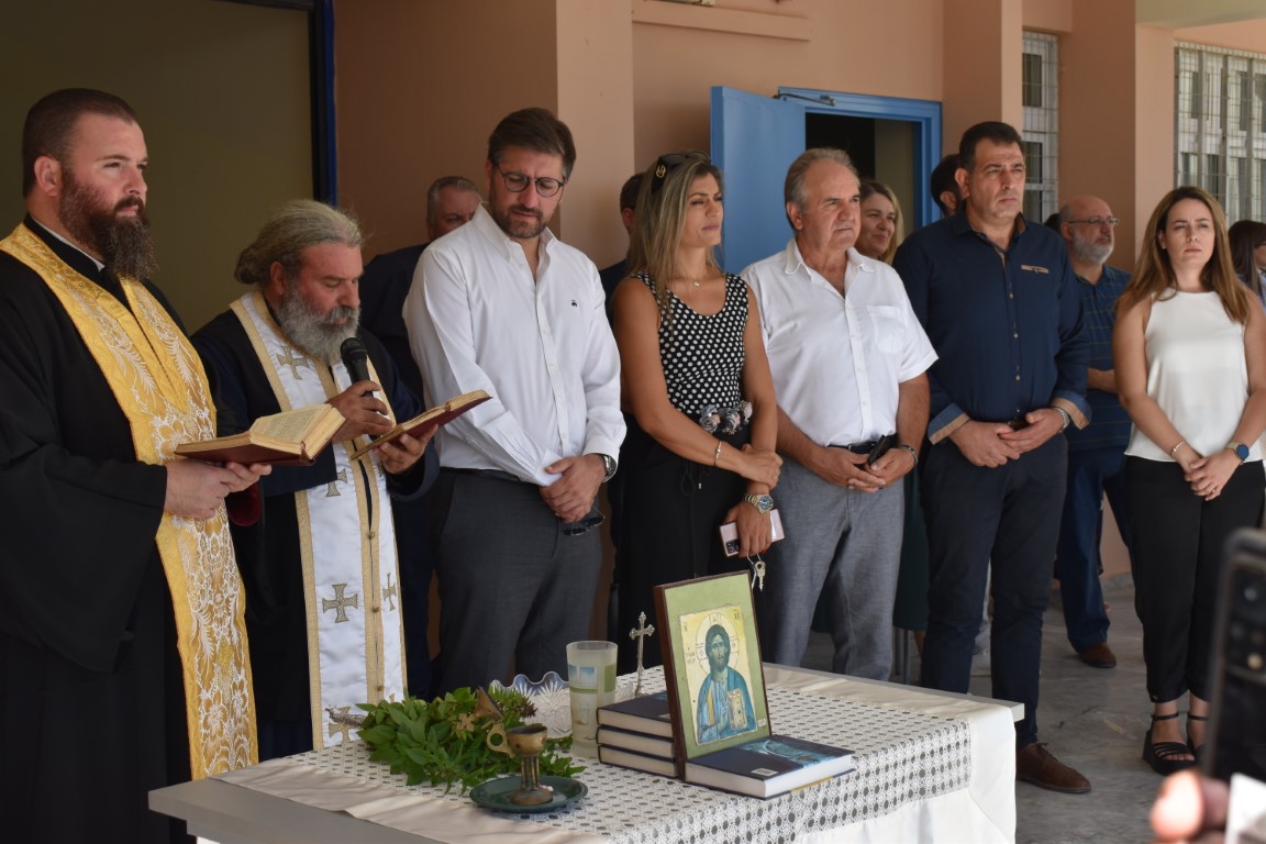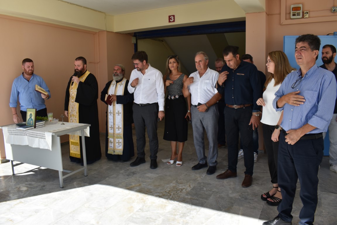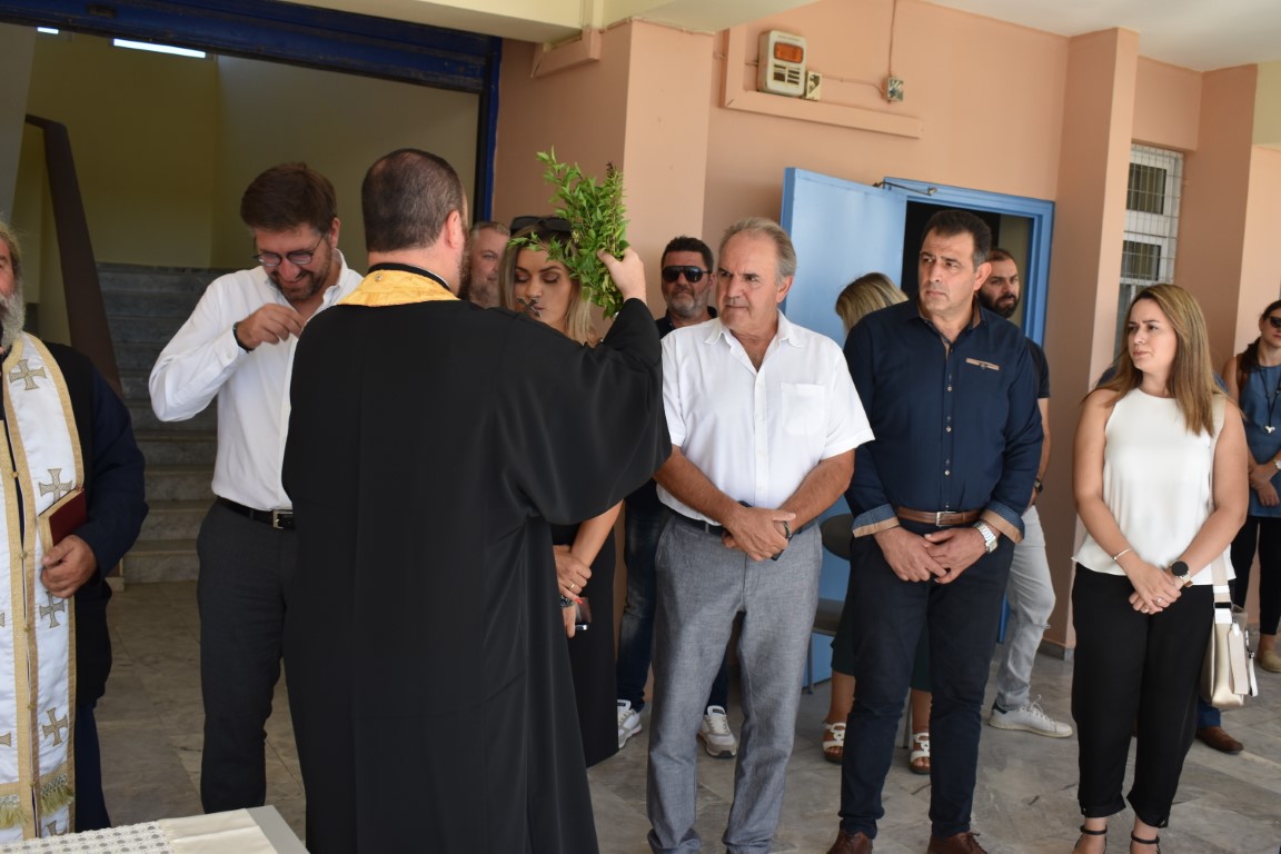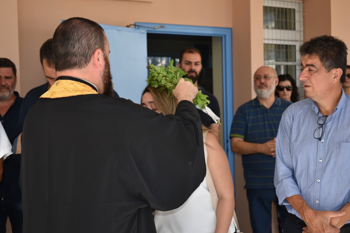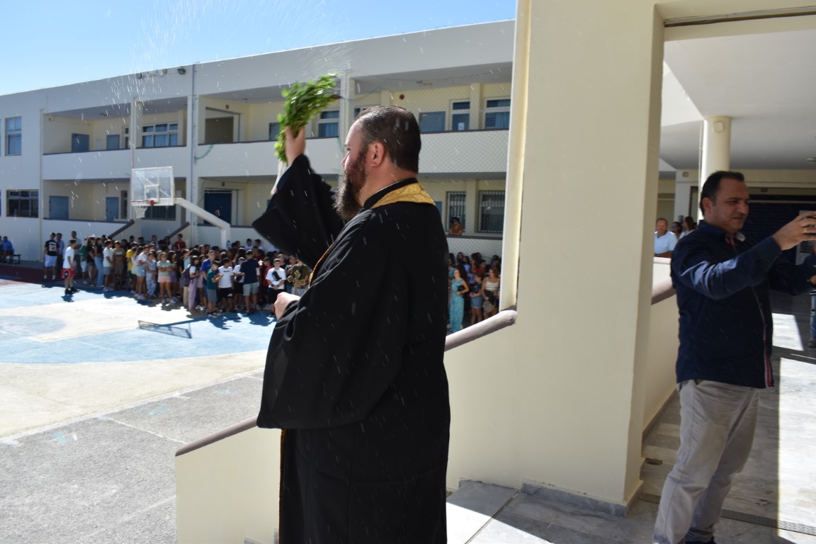 Τον Αγιασμό τέλεσαν ο πατήρ Ευάγγελος από την Ενορία του Αγίου Νικολάου Γαζίου και πατήρ-Εμμανουήλ της ενορίας Αγίας Μαρίνας, παρουσία μαθητών, εκπαιδευτικών και αιρετών.