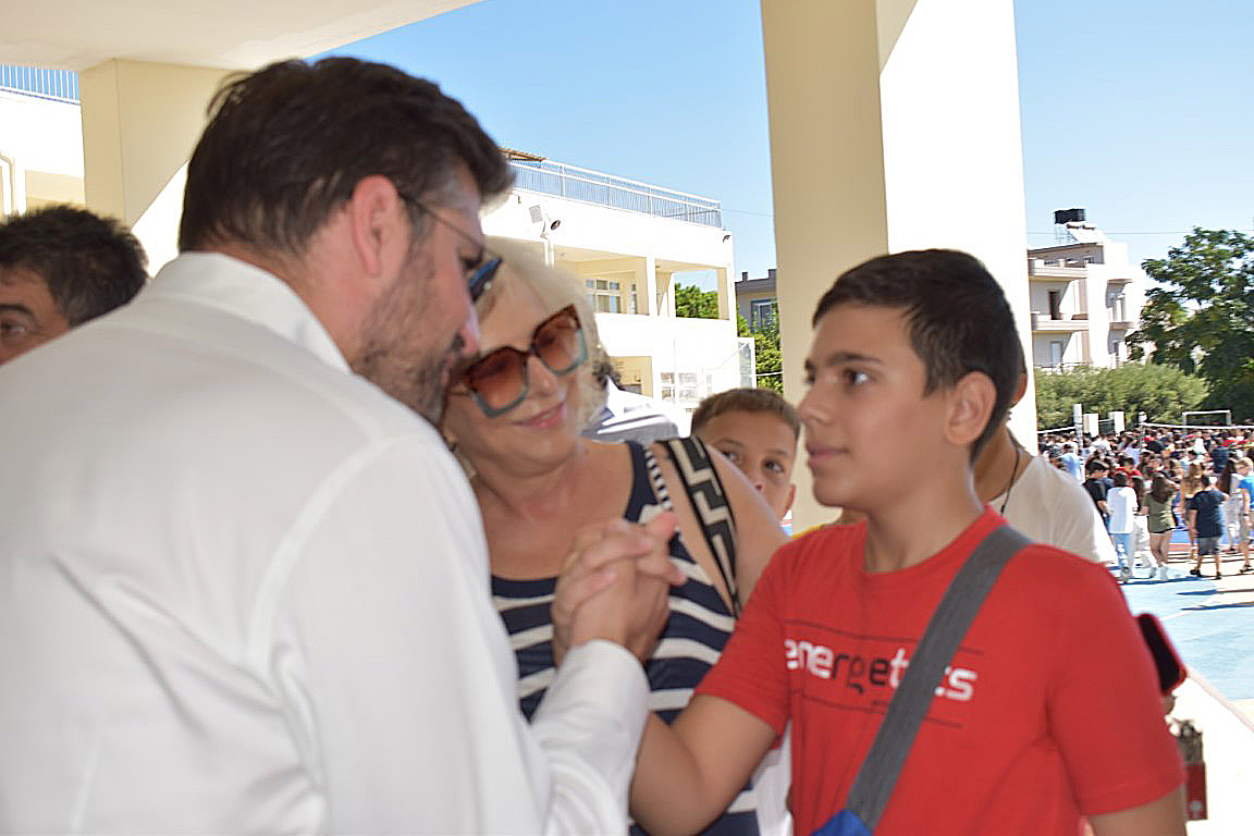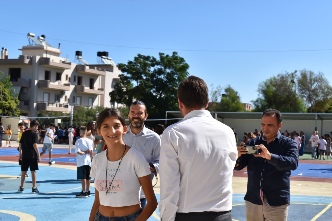 Ο ίδιος καλωσόρισε τους μαθητές και τους ευχήθηκε μεταξύ άλλων “Καλή σχολική χρονιά σε όλους. Καλή δύναμη κυρίως σε εσάς τους μαθητές, να έχετε υγεία, να έχετε πάντα αυτό το ζωηρό χαμόγελο και το ταξίδι στο Γυμνάσιο να είναι γεμάτο όμορφες αναμνήσεις”.