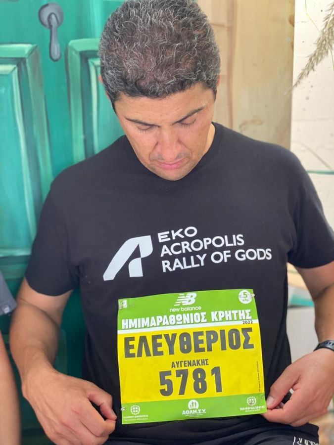 Στην εκκίνηση του Ημιμαραθωνίου Κρήτης και τους παράλληλους αγώνες 10χλμ, 1.000μ για παιδιά και ΑΜΕΑ 200 μέτρων (των 5 χλμ αργότερα το μεσημέρι, όπου συμμετείχα) μαζί με τον Δήμαρχο Μινώα Πεδιάδας, Μανώλη Φραγκάκη, την κορυφαία μαραθωνοδρόμο της χώρας μας, Μαρία Πολύζου και τον πρόεδρο του διοργανωτή Αθλητικού Συλλόγου Υγείας Αρκαλοχωρίου, Γιώργο Αλεβιζάκη.