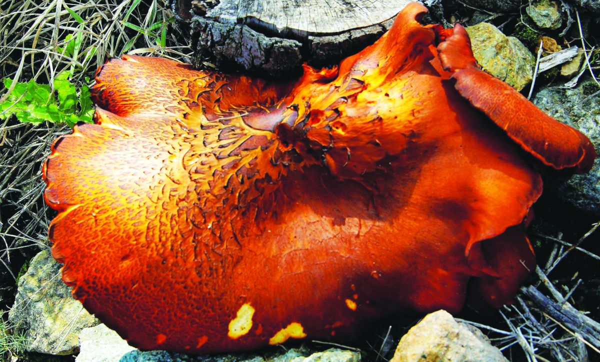 Το λιόφυτο του στις Γωνιές επισκέφθηκε το περασμένο Σαββατοκύριακο ο Κώστας Παντερής και ανάμεσα στις κομμένες ελιές αντίκρυσε ένα γιγάντιο πορτοκαλί μανιτάρι.