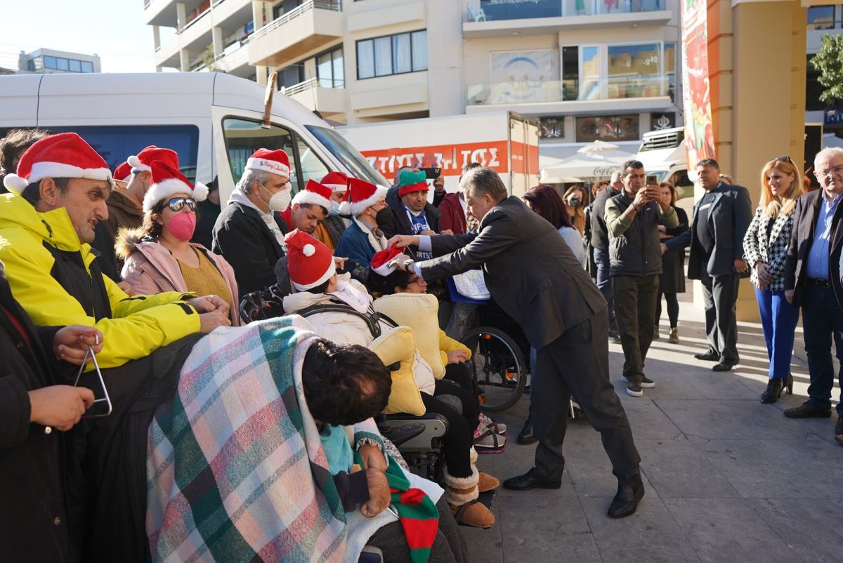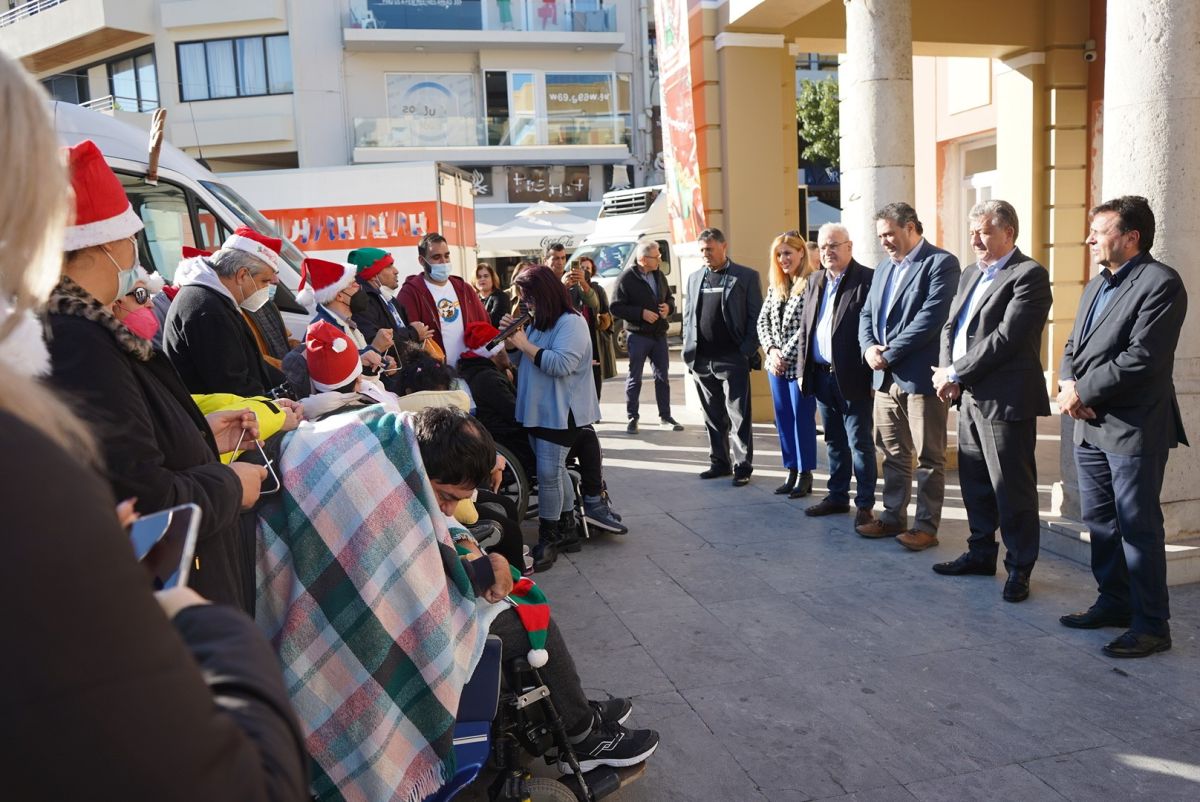 Από την πλευρά του ο Αντιπεριφερειάρχης Κοινωνικής Πολιτικής, Λάμπρος Καμπουράκης, ανέφερε ότι: «Τα παιδιά και τα άτομα με αναπηρίες που ζουν σε δομές κοινωνικής φροντίδας δίνουν καθημερινά το δικό τους αγώνα για ζωή και δημιουργία, με αξιοπρέπεια, αφοσίωση και αποτελούν για όλους μας ένα φωτεινό παράδειγμα ψυχικής δύναμης, γενναιότητας και πίστης. Η σημερινή εκδήλωση αποσκοπεί στο να σκορπίσει χαμόγελα και χαρά στα παιδιά και τα άτομα με αναπηρία των δομών αυτών σε όλη την Κρήτη. Με την ελπίδα το πνεύμα των Χριστουγέννων να τα συντροφεύει σε κάθε στιγμή της ζωής τους και με την αισιοδοξία για ένα κόσμο όπου για κάθε παιδί θα υπάρχει μια οικογένεια που θα του προσφέρει ζεστασιά, αγάπη και φροντίδα, αλλά και για μια κοινωνία ίσων δικαιωμάτων και ευκαιριών».